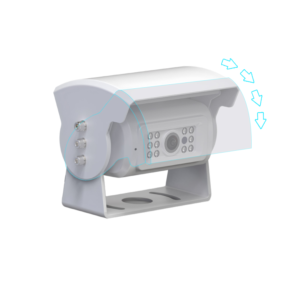 1080P wasserdichte Rückfahrkamera mit automatischem Verschluss, weiße Farbe, ein hochwertiges AHD-Aluminiumlegierungsgehäuse von CarleaderKamera mit eingebautem Motor zur Unterstützung der automatischen Verschlussfunktion. Das Kabel deckt das Objektiv automatisch ab, wenn der Motor gestartet oder der Monitor ausgeschaltet wird. FFunktionen mit 11 IR-LEDs für Infrarot-Nachtsicht.