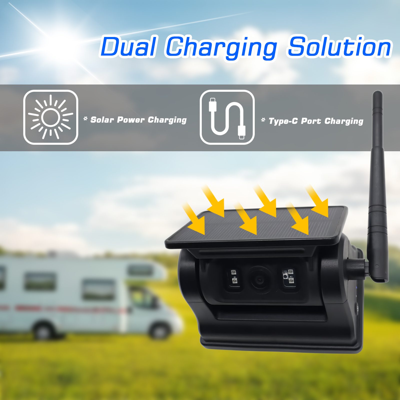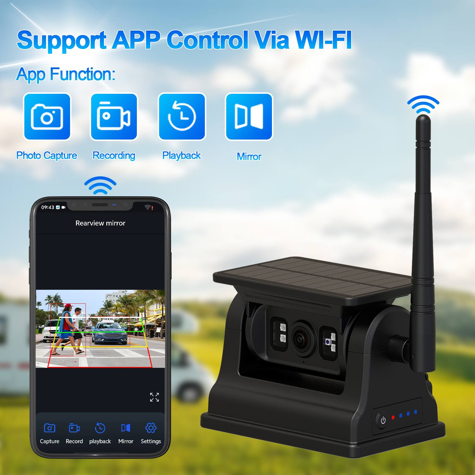 9-Zoll-IPS-2AV-AHD-Fahrzeugmonitor, unterstützt CarPlay MultimediaCarleader AI-Erkennung, solarbetriebene, wiederaufladbare WIFI-Rückfahrkamera mit Magnetfuß, Keine Verkabelung erforderlich, einfache Installation mit Magnetfuß, solarbetriebene kabellose Rückfahrkamera, eingebauter wiederaufladbarer 10500-mAh-Akku mit großer Kapazität und Nachtsichtfunktion, kann auch mit Solarenergie betrieben werden, Energieeinsparung und Umweltschutz. Kamera unterstützt AI-Erkennungsfunktion, kann Fußgänger und Fahrzeuge erkennen, auch sUnterstützt die Verbindung mit dem Mobiltelefon über WLAN, ermöglicht dem Benutzer das Aufnehmen von Bildern, das Aufzeichnen von Videos und die Wiedergabe sowie das Anpassen der KI-Kalibrierung usw. Diese Kamera ist Ihre beste Option für Fahrzeugsicherheitsüberwachungsgeräte, um Ihr Fahrzeug sicher zu fahren.