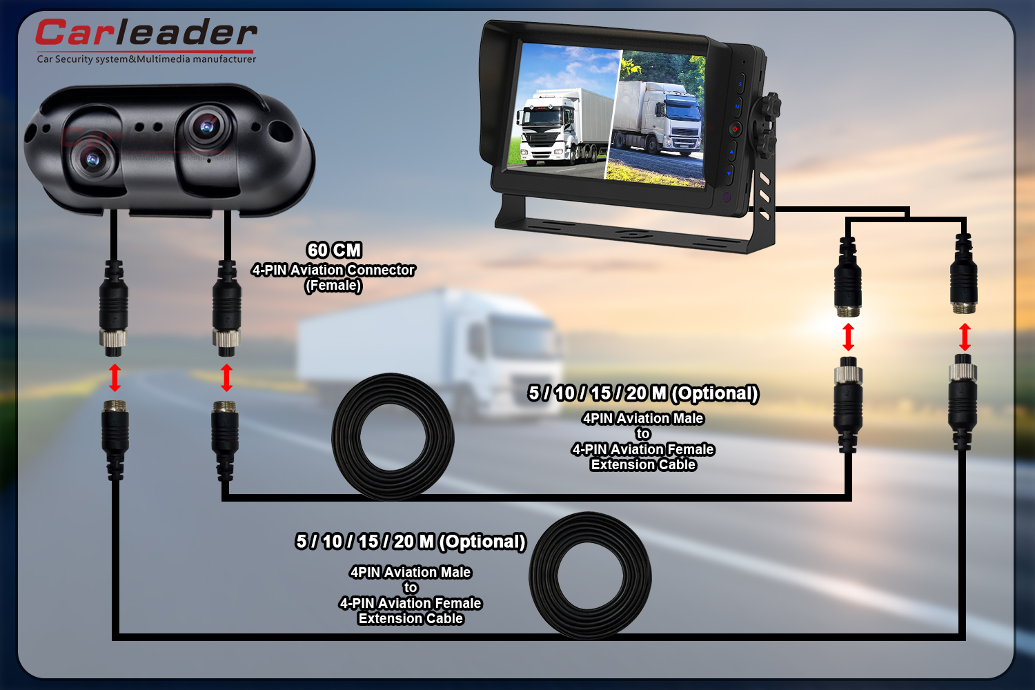 Carleaderbietet zwei verschiedene Verkabelungslösungen für die Starlight AHD Dual Lens Heavy Duty Rückfahrkamera an, um unterschiedlichen Verkabelungsanforderungen gerecht zu werden:
