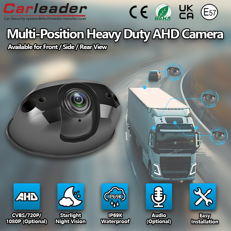 Im Fahrzeugbereich Carleader1080P AHD Starlight Superweitwinkel-Rückfahrkamerawerden häufig in Lastkraftwagen, Bussen, Schulbussen, technischen Geräten für Wohnmobile und anderen schweren Fahrzeugen eingesetzt. Sie kann als Front-, Seiten- und Rückfahrkamera verwendet werden und kann sogar mit MDVR kombiniert werden, um Videoaufzeichnung, Fernüberwachung, Flottenmanagement und andere Funktionen zu ermöglichen