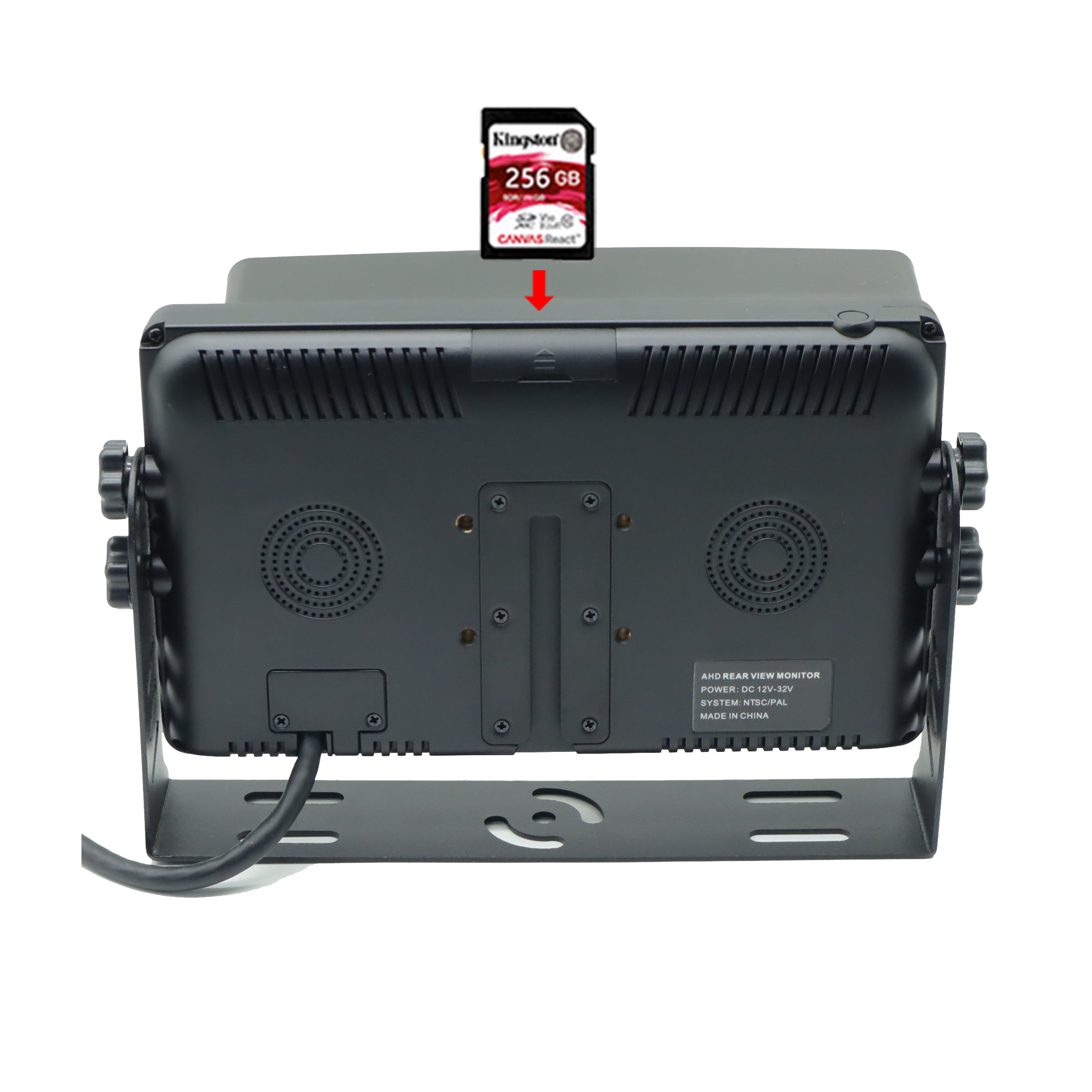 Carleader 7 Zoll 4CH AHD-Eingänge Quad View Display Monitor unterstützt DVR-Aufnahmefunktion, mit SD-Kartensteckplatz auf der Rückseite des Monitors, maximale Kapazität beträgt bis zu 256 GB. Funktionen mit Loop-Aufnahmefunktion, können das Kameravideo automatisch aufzeichnen und wiedergeben.