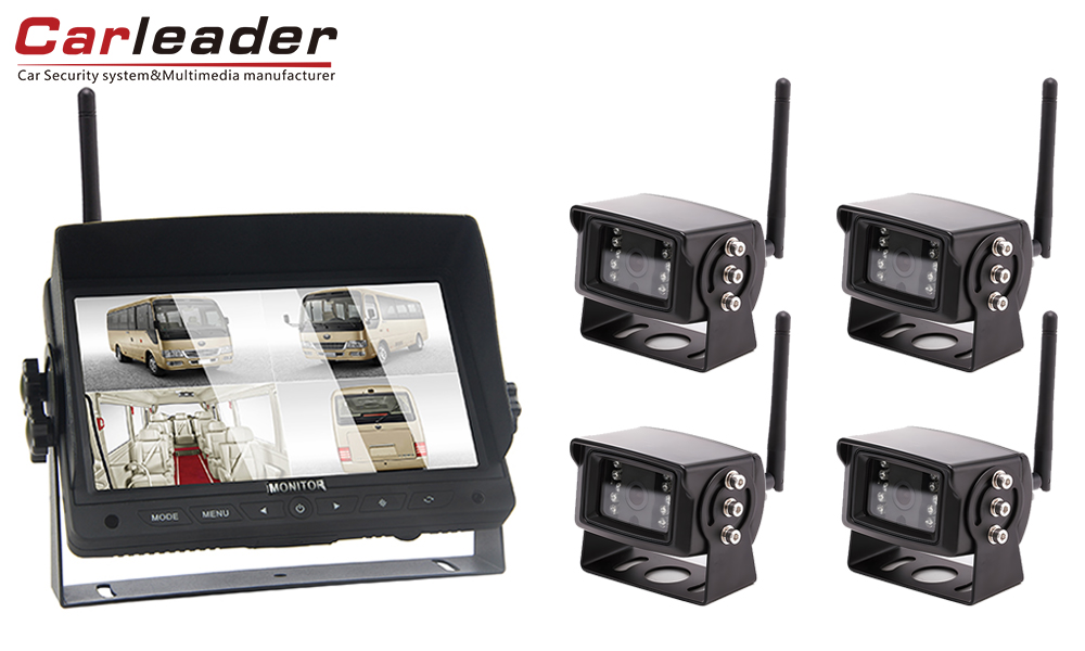 Carleader7-Zoll-2,4-G-Digital-Wireless-2-CH-Kamerasystem mit geteiltem Display, ein leistungsstarkes drahtloses Überwachungssystem mit Unterstützung für 2 Slipt-Display-Ansichten, gepaart mit 2 drahtlosen Kameras. 7-Zoll-Digitalpanel, 16:9-Bildverhältnis, 1024 x 600 (RGB)-Auflösung, bieten dem Fahrer ein klares Fahrerlebnis.