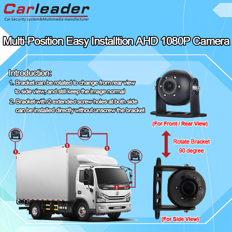 CarleaderAHD-Front-/Seiten-/Rückfahrkamera für schwere Nutzfahrzeugeist eine leistungsstarke, vielseitige Fahrzeugkamera, die eine zuverlässige und klare Überwachung der Vorder-, Seiten- und Rückansicht bietet. Dank fortschrittlicher Bildgebungstechnologie und robustem Umweltschutz ist es die ideale Wahl für Sicherheits- und Überwachungssysteme im Automobilbereich.