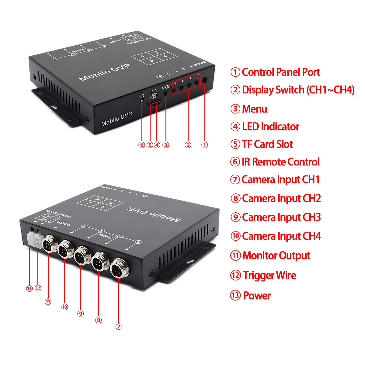 * Integrierte DVR-Aufnahme: Unterstützt die Loop-Aufnahmefunktion, zeichnet Filmmaterial direkt auf einer TF-Karte auf, maximale Kapazität von 512 GB für längere Aufnahmezeiten.