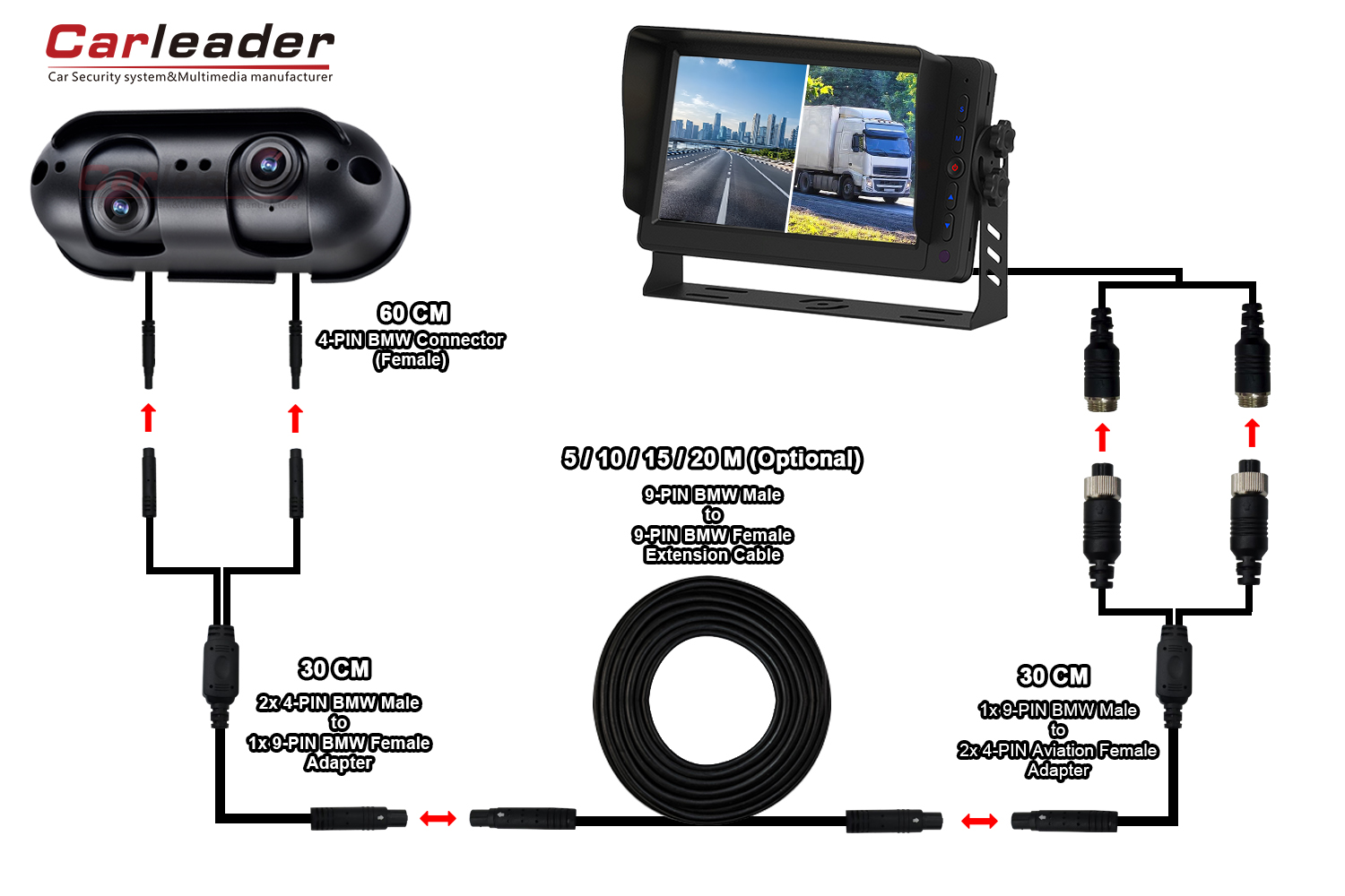 IP69KStarlight AHD-Hochleistungs-Rückfahrkamera mit zwei Objektiven, eine hochwertige, neu entwickelte AHD-Kamera für Privatanwender, mit integriertem Doppelobjektiv in einer Kamera und separat einstellbarem Objektivwinkel, die es dem Benutzer ermöglicht, sowohl Nah- als auch Fernsicht auf demselben Monitor zu betrachten.